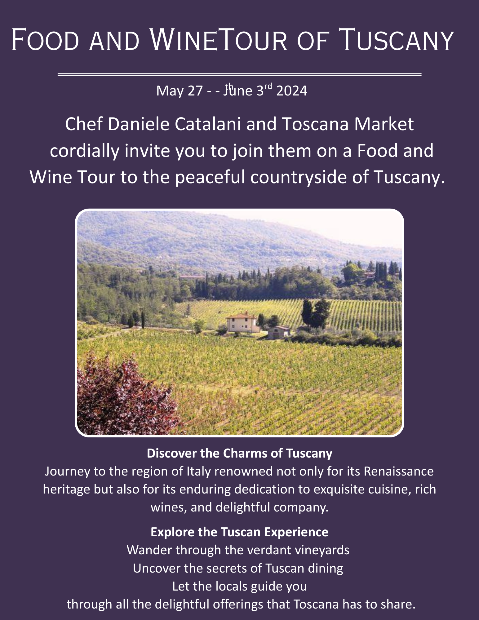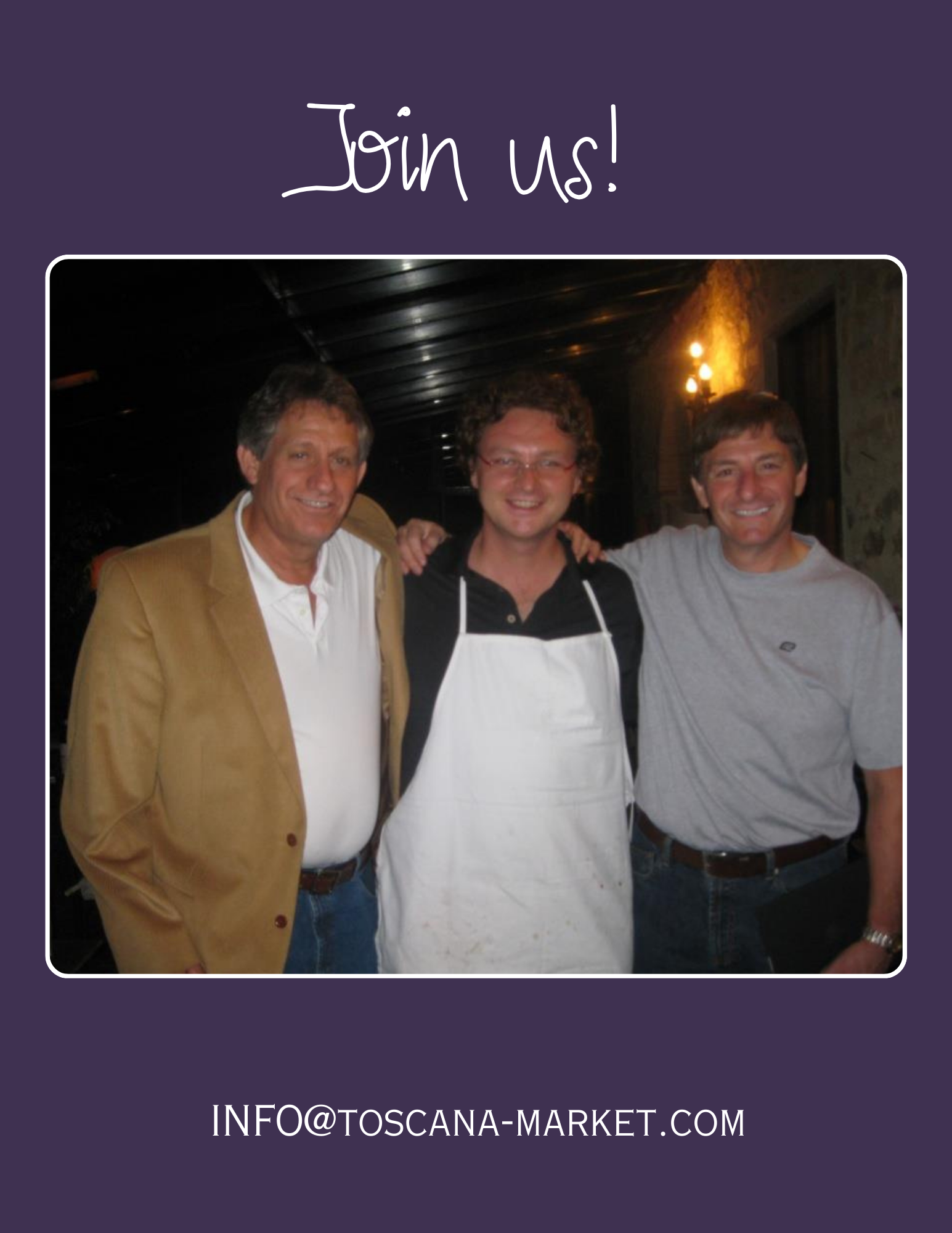 Elevate your special occasion with a private cooking event at Toscana Market! Whether it's a birthday celebration, anniversary, or corporate gathering, our expert chefs will create a memorable culinary experience tailored to your needs. Contact us today to plan your unique event and indulge in authentic Italian flavors with your guests.