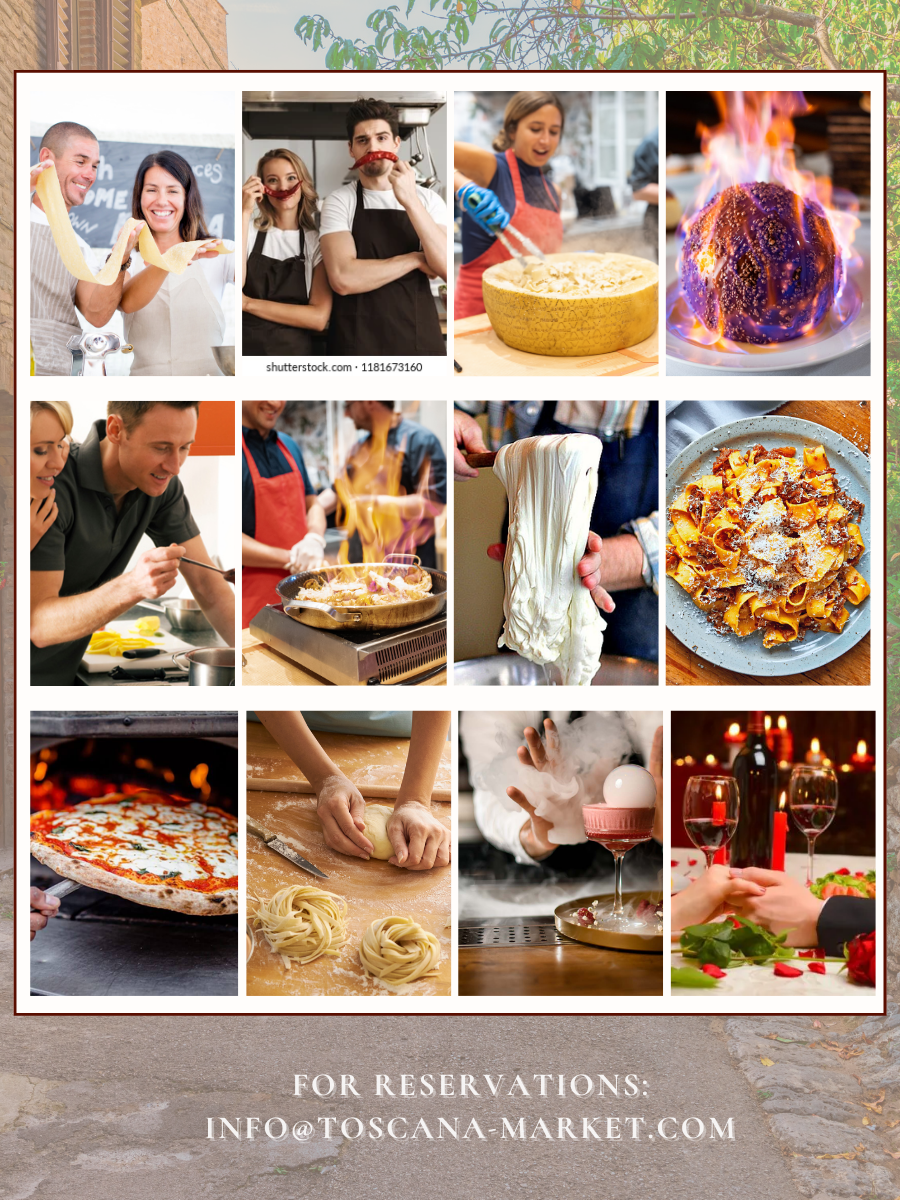 Explore and book our exciting cooking classes at Toscana Market! Choose from a variety of hands-on culinary experiences led by expert chefs. Discover the art of Italian cooking and create delicious dishes in a welcoming atmosphere. Reserve your spot today and embark on a flavorful journey with us!